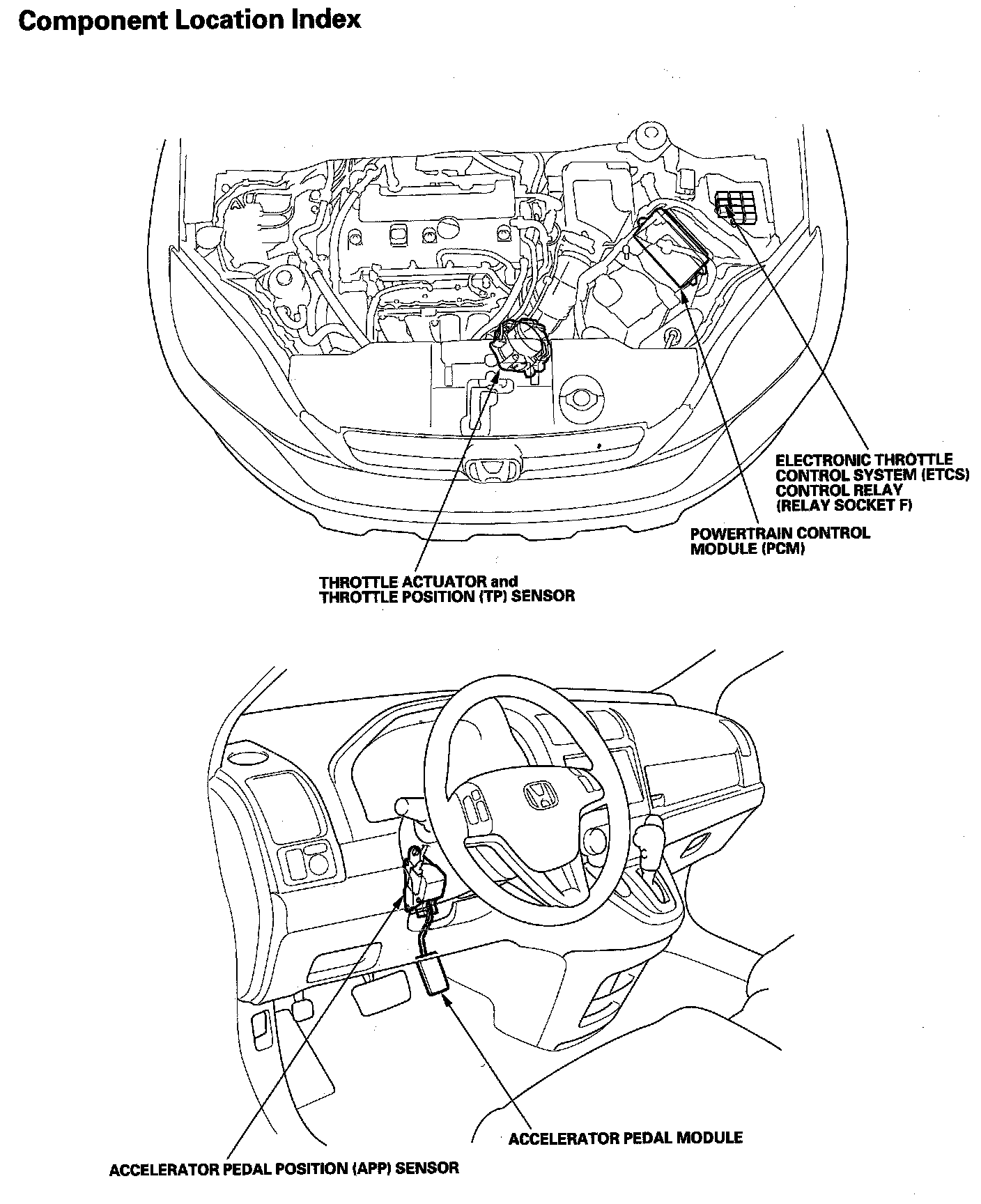 Electronic Throttle Control System Component Location Index: