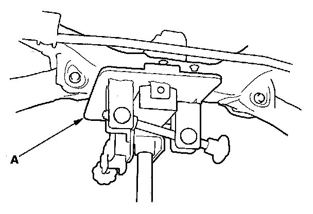9. Lower the transmission jack (A) and the rear differential or axle beam.