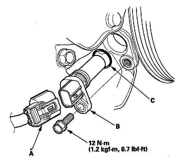 3. Install the parts in the reverse order of removal with a new O-ring (C).