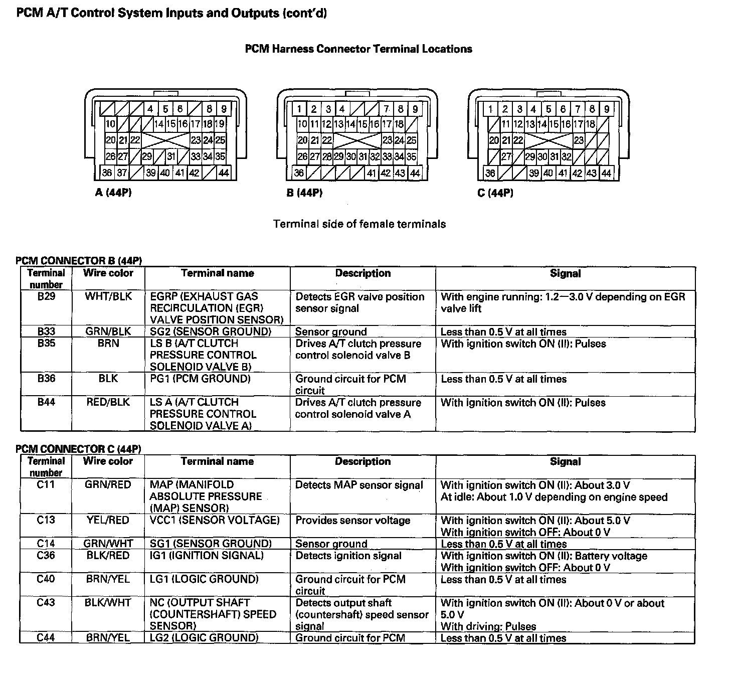 PCM A/T Control System Inputs and Outputs (Part 3):