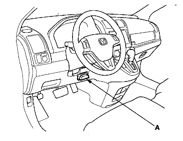When the Honda Diagnostic System (HDS) is connected to the data link connector (DLC) (A) (located behind the driver's dashboard lower cover) and the SCS mode is selected, it will indicate the diagnostic trouble code (DTC) when the ignition switch is turned ON (II) and the appropriate menu is selected.