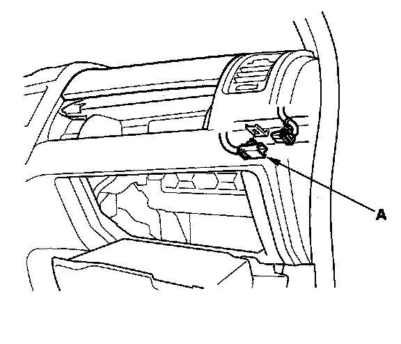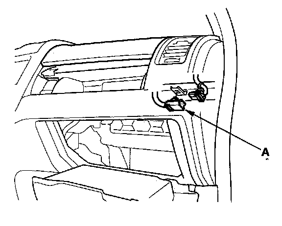 2. Connect the front passenger's airbag 4P connector (A) to dashboard wire harness, then reinstall the glove box.