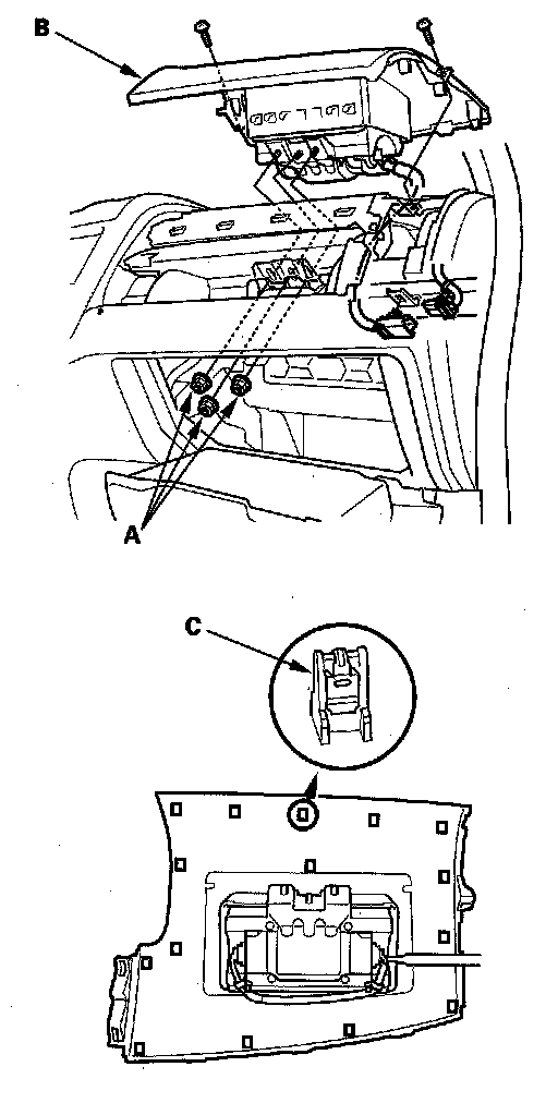 NOTE: The airbag lid has pawls (C) on each side which attach it to the dashboard.