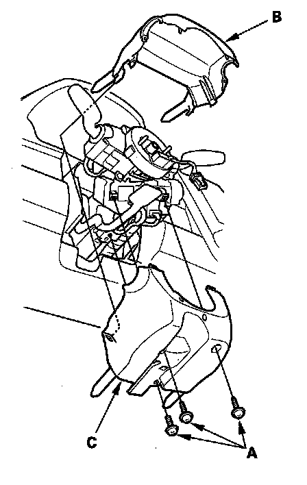 7. Remove the column cover screws (A), then remove the column covers (B,C).