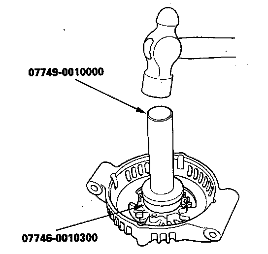 12. With a hammer, driver, and attachment, install a new front bearing in the drive end housing.