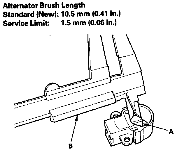 - If either brush is shorter than the service limit, replace the brush holder assembly.