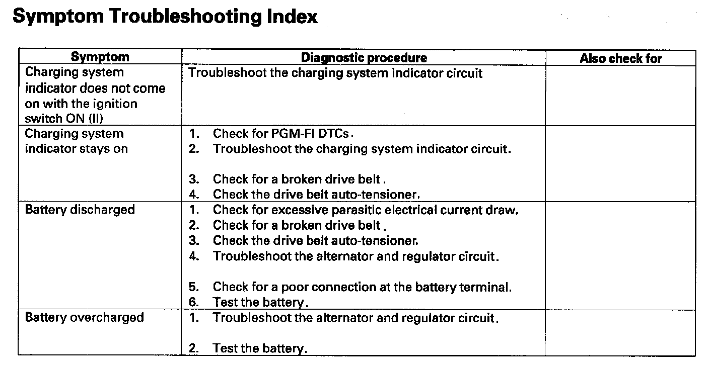 Symptom Troubleshooting Index: