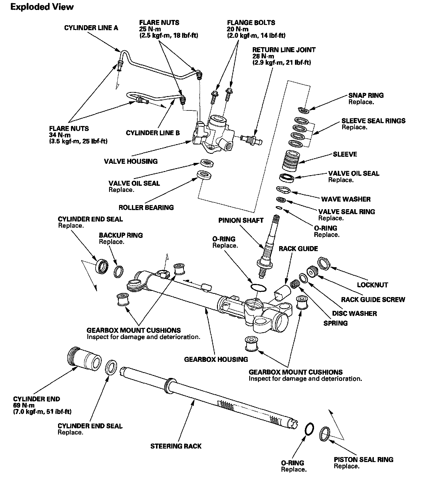 9. Drain the fluid from the cylinder fittings by slowly moving the steering rack back and forth.