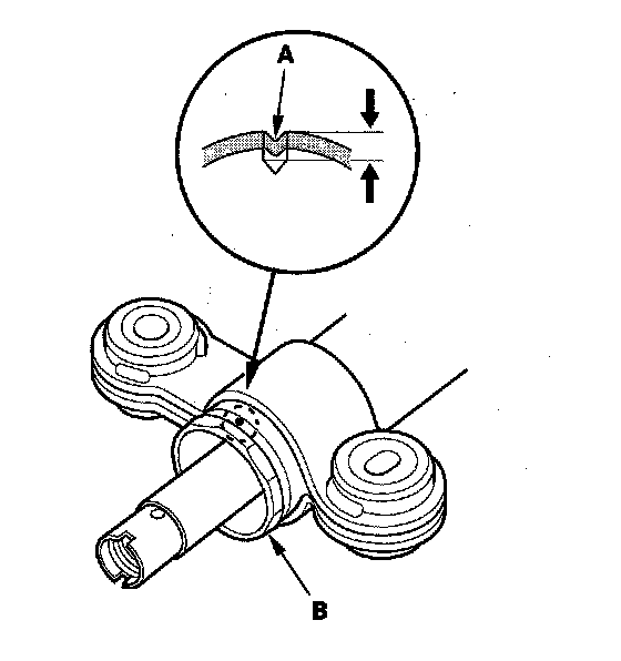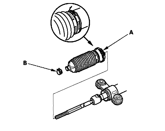 2. Remove the boot bands (A) and tie-rod clips (B). Pull the boot away from the ends of the steering gearbox.
