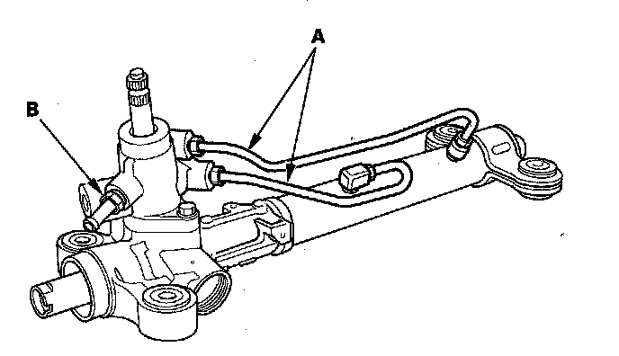 8. Remove the cylinder lines (A) and return line joint (B) from the steering gearbox.