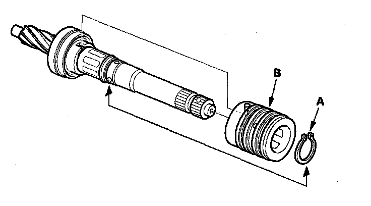 23. Remove the snap ring (A) and sleeve (B) from the pinion shaft.