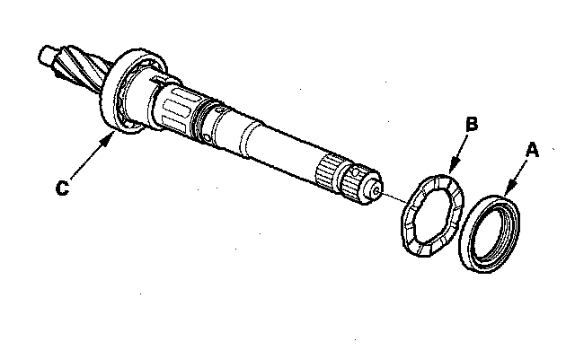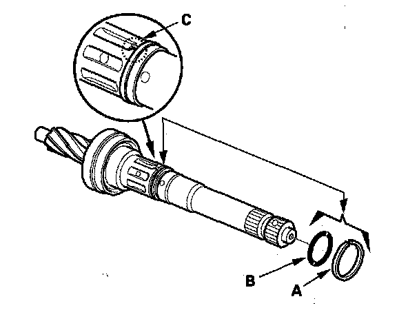 ^ Inspect the ball bearing (C) by rotating the outer race slowly. If there is any excessive play or wear, replace the pinion shaft and sleeve as an assembly.