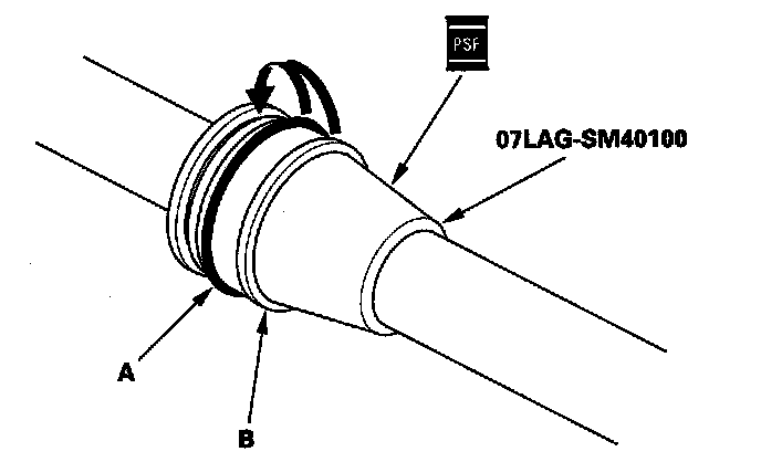 67. Coat the inside surface of the cylinder end (A) with power steering fluid, then install the cylinder end by screwing it into the cylinder (B). Tighten the cylinder end to the specified torque.