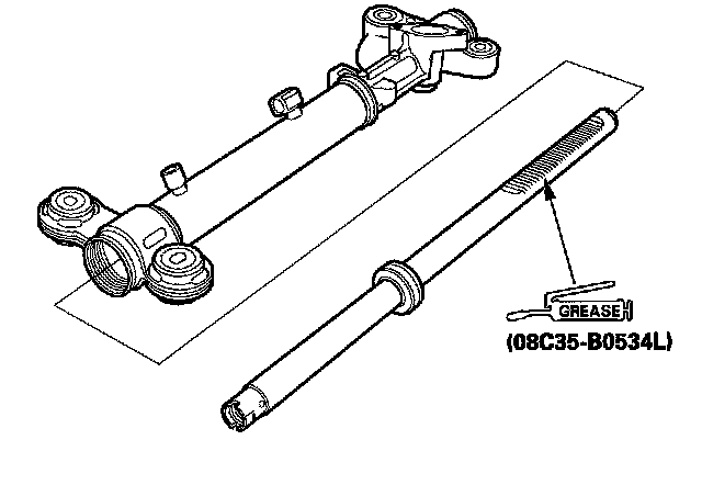 58. Apply steering grease to the steering rack teeth, then insert the steering rack into the gearbox housing. Be careful not to damage the inner surface of the cylinder wall with the rack edges.