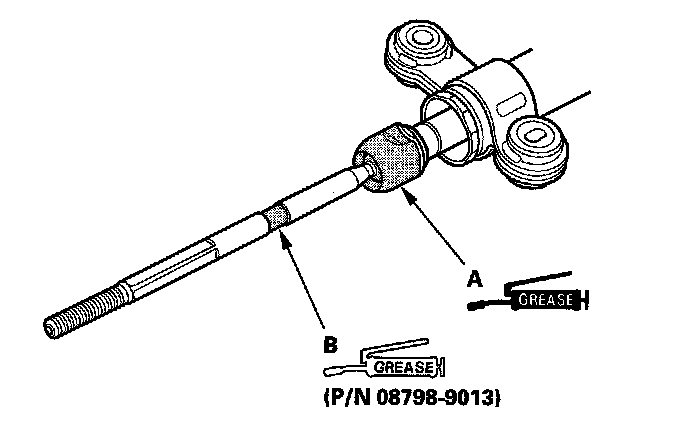 80. Apply a light coat of silicone grease (P/N 087989013) to the boot grooves (B) on the rack end.