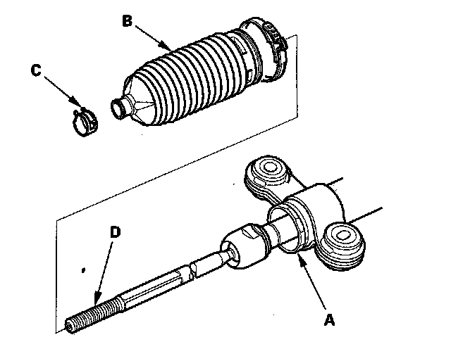 83. After installing the boots, wipe the grease off the threaded section (D) of the rack end.