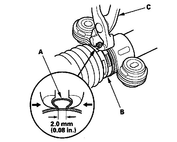 82. Clean off any grease or contamination from the boot installation grooves (A) around on the gearbox housing. Install the boots (B) on the rack ends with the tie-rod clips (C), and fit the boot end in the installation grooves in the housing properly.