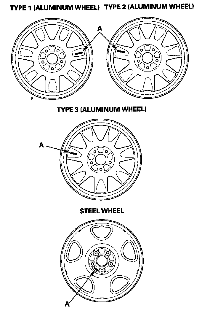 ^ This vehicle may be equipped with either type 1, type 2, or type 3 aluminum wheels, or steel wheels.