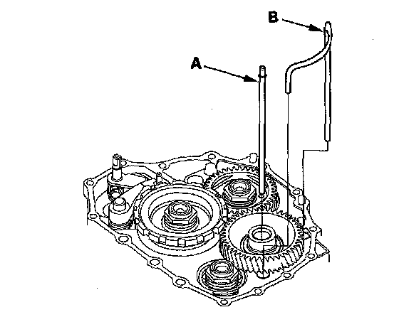 19. Install the ATF feed pipe (A) into the idler gear shaft, and install the ATF lubrication pipe (B) into the transmission housing.