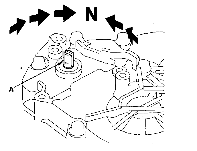 23. Set the selector control shaft (A) to the N position by turning the selector control lever on the torque converter side.