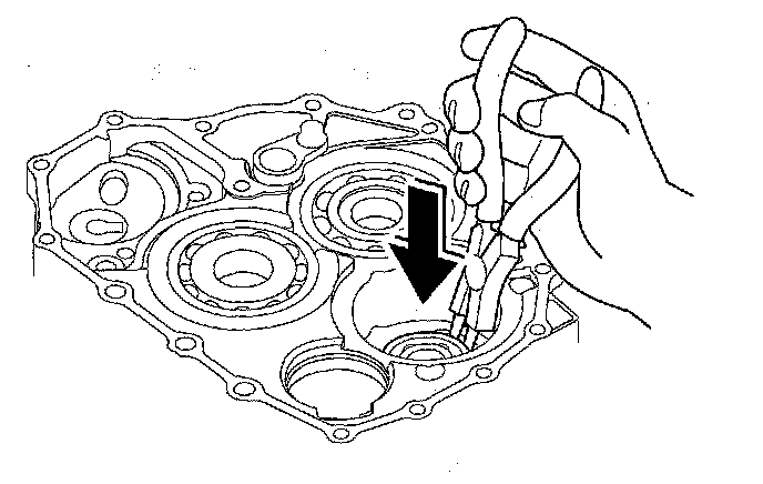 3. Expand the snap ring of the idler gear shaft bearing with the snap ring pliers, then push the bearing out.