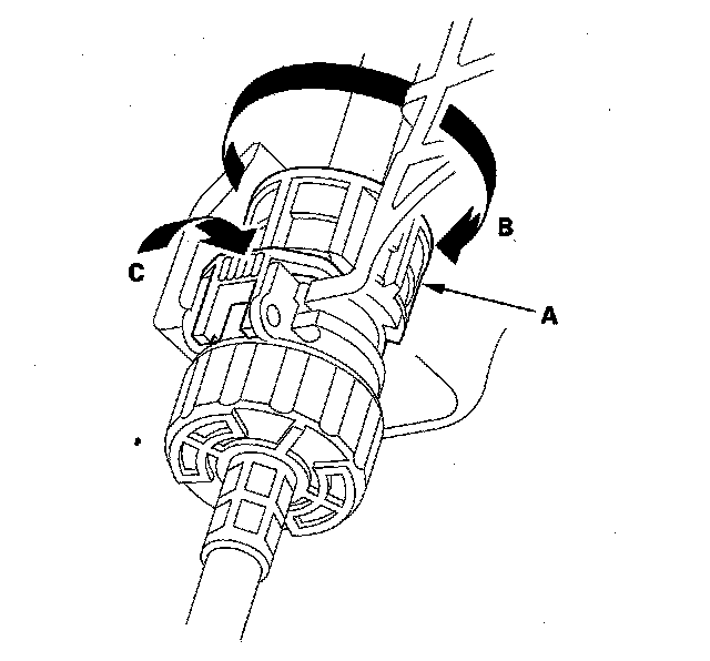 5. Rotate the socket holder retainer (A) counterclockwise (B) until it stops, and push the retainer lock (C) into the socket holder retainer to lock the retainer.