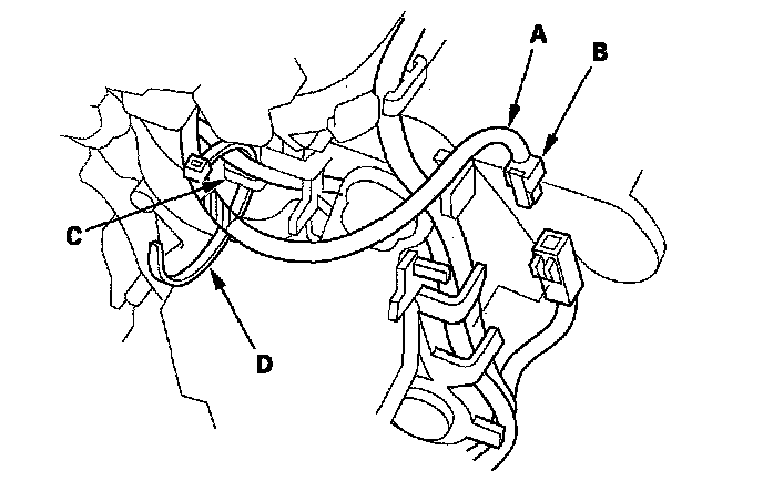 9. Route the D3 switch harness (A), connect the D3 switch 2P connector (B), and install the connector in the holder.