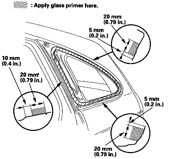 - Never touch the primed surfaces with your hands. If you do, the adhesive may not bond to the quarter glass properly, causing a leak after the quarter glass is installed.