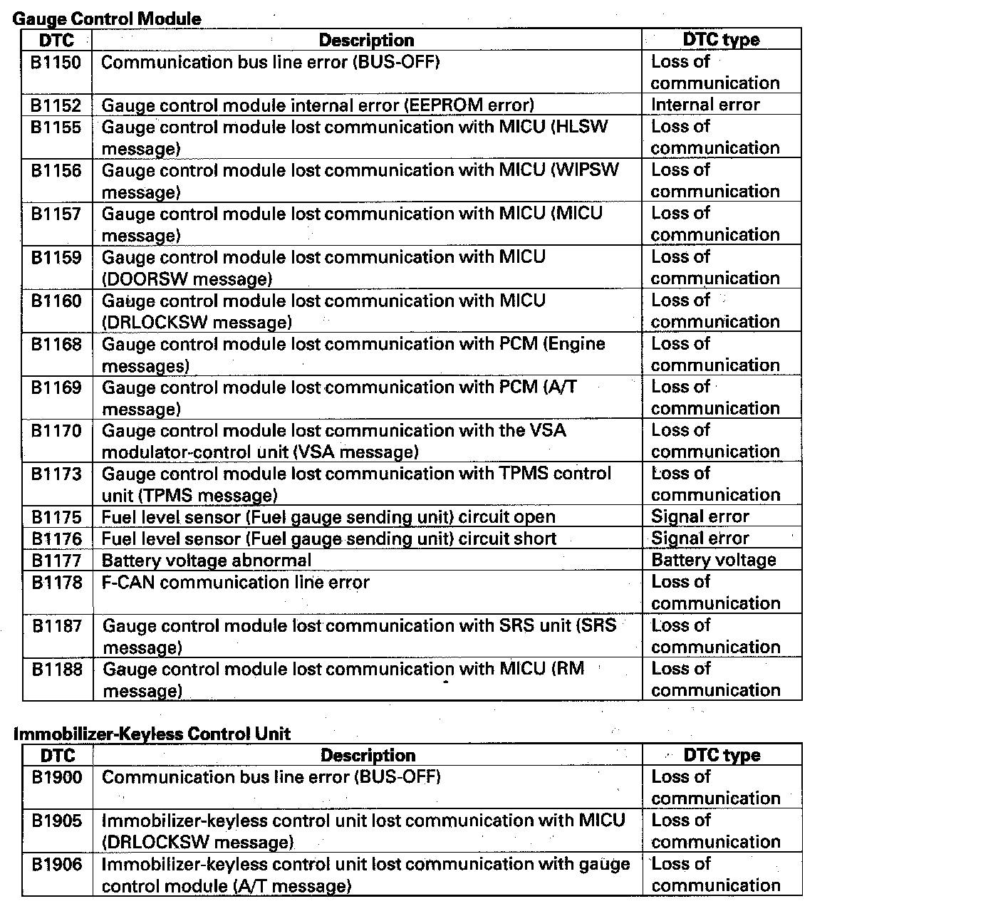 - Internal error DTCs