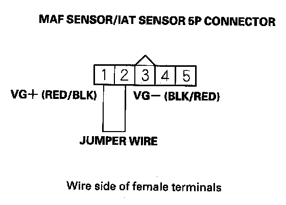 9. Connect MAF sensor/IAT sensor 5P connector terminals No. 1 and No. 2 with a jumper wire.