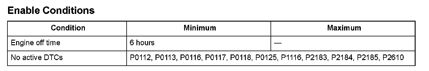 A Malfunction is detected if these three conditions are present after the engine and the ignition switch have been off for at least 6 hours: