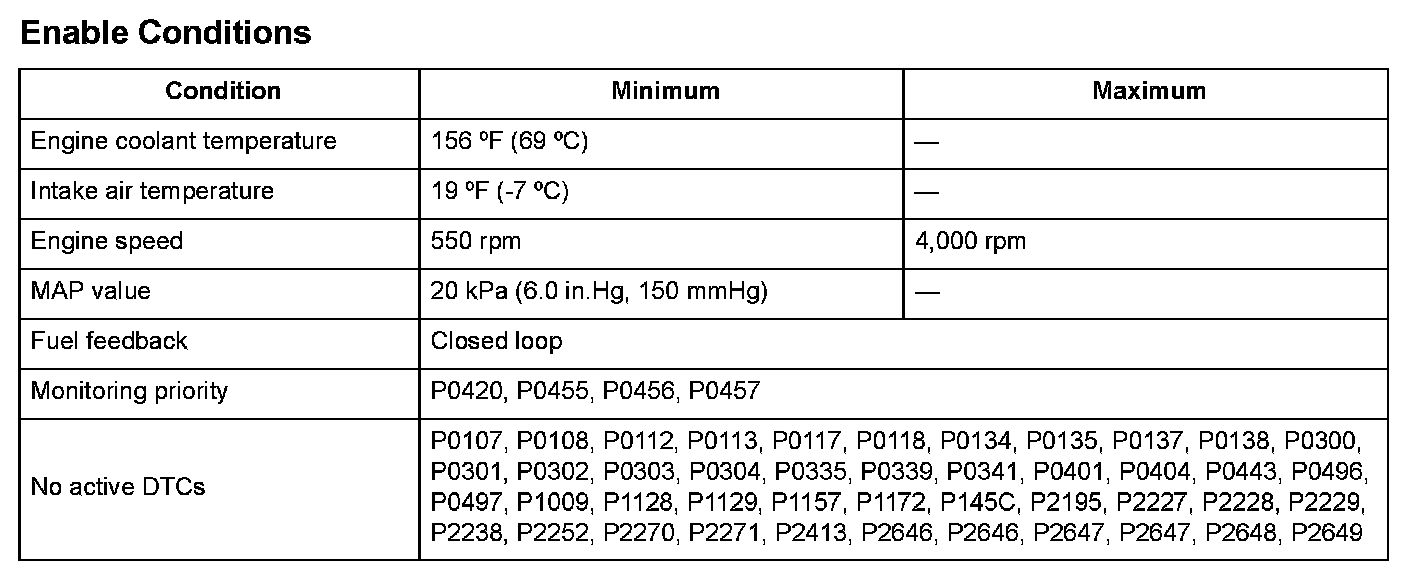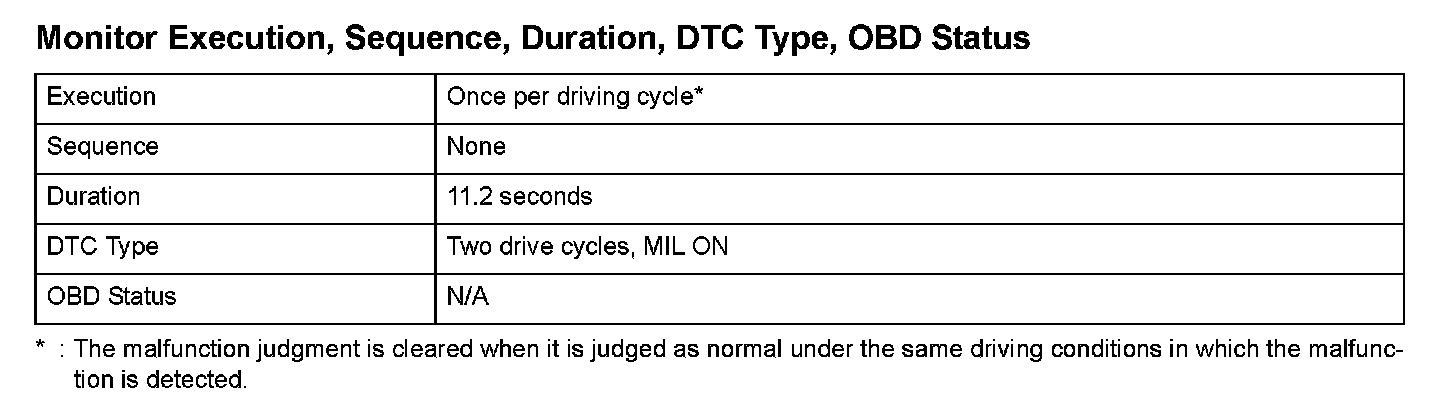 Monitor Execution, Sequence, Duration, DTC Type, OBD Status