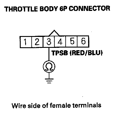 9. Check for continuity between throttle body 6P connector terminal No. 3 and body ground.