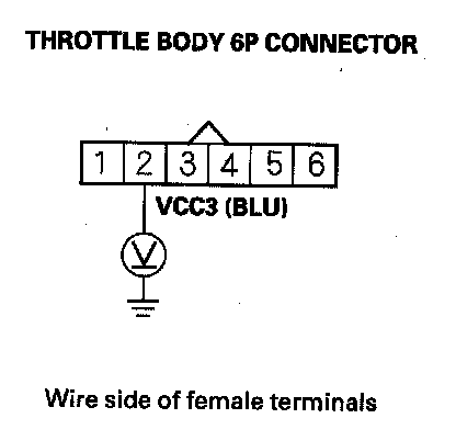10. Measure voltage between throttle body 6P connector terminal No. 2 and body ground.