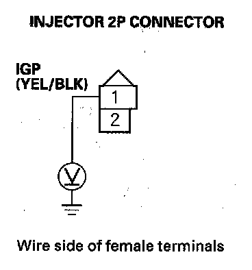 50. Measure voltage between injector 2P connector terminal No. 1 and body ground.