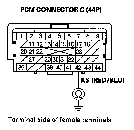 11. Connect the knock sensor 1P connector terminal to body ground with a jumper wire.