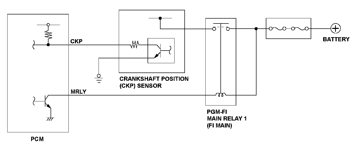If no pulsing signals from the CKP sensor are detected, a Malfunction is detected and a DTC is stored.