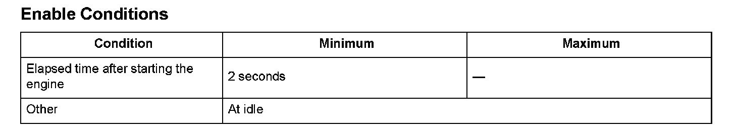 The power train control module (PCM) monitors the FTP sensor output voltage. The FTP sensor output voltage rises as the fuel tank pressure increases. Conversely, the FTP sensor output voltage drops as the fuel tank pressure decreases. If the FTP sensor output voltage does not reach a target value within a set time after starting the engine in a cold condition, the PCM detects a Malfunction and stores a DTC.