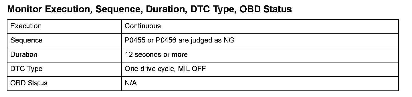 1. When a loose fuel fill cap is judged by this detection, the fuel fill cap caution is displayed. At this time, a DTC is not stored.