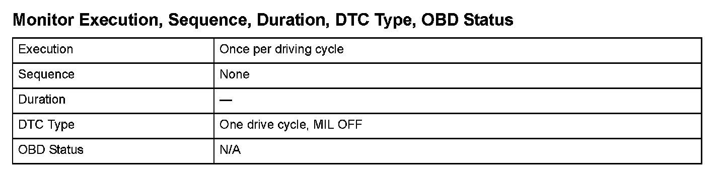 Monitor Execution, Sequence, Duration, DTC Type, OBD Status