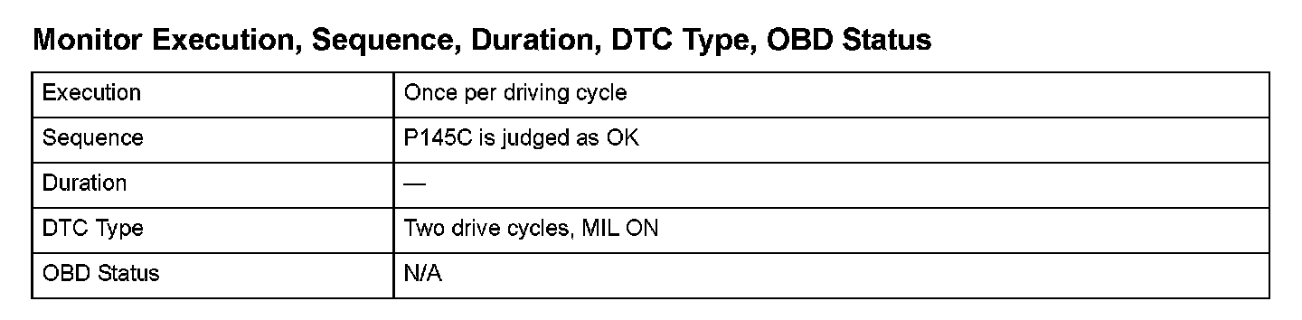 Monitor Execution, Sequence, Duration, DTC Type, OBD Status