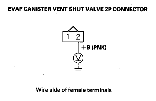 9. Measure voltage between EVAP canister vent shut valve 2P connector terminal No. 2 and body ground.
