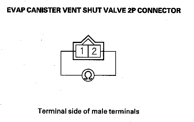 11. Measure resistance between EVAP canister vent shut valve 2P connector terminals No. 1 and No. 2.