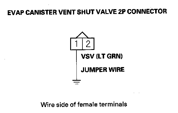 15. Connect EVAP canister vent shut valve 2P connector terminal No. 1 to body ground with a jumper wire.