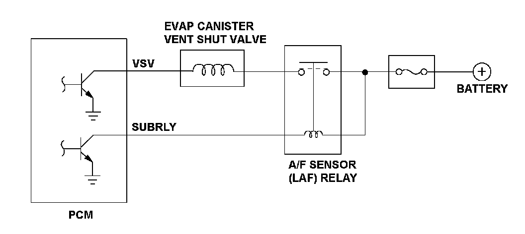If the return signal is "ON" when the power train control module (PCM) outputs the "OFF" signal to the EVAP canister vent shut valve, the PCM detects a Malfunction and a DTC is stored.