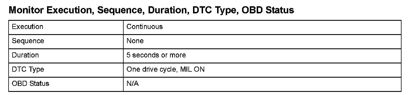 Monitor Execution, Sequence, Duration, DTC Type, OBD Status