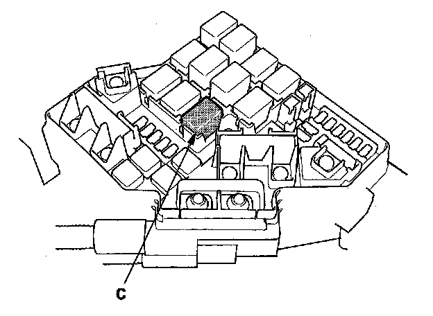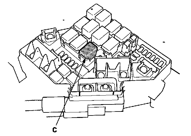 11. Remove PGM-FI main relay 1 (C) from the under-hood fuse/relay box.