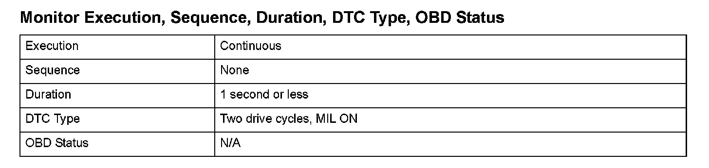 Monitor Execution, Sequence, Duration, DTC Type, OBD Status