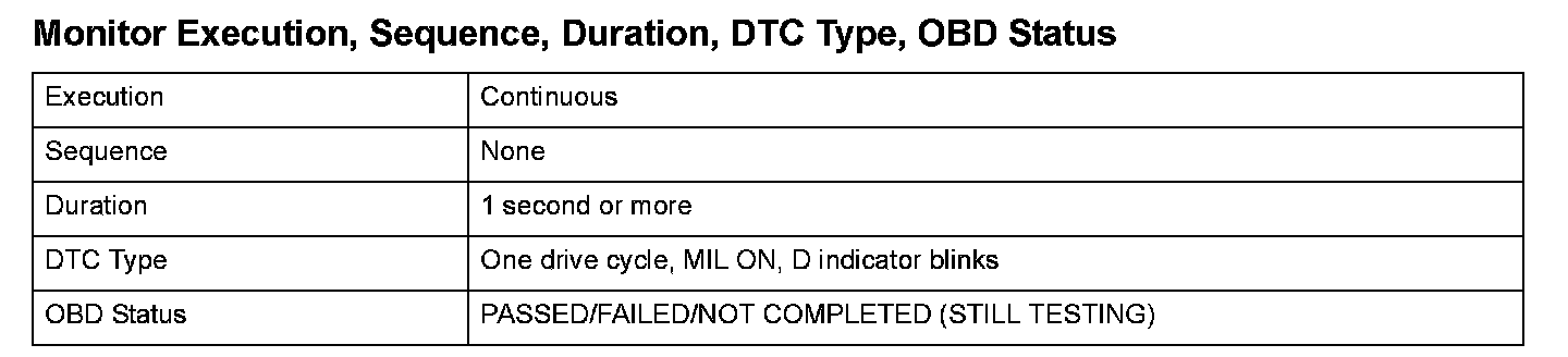 Monitor Execution, Sequence, Duration, DTC Type, OBD Status