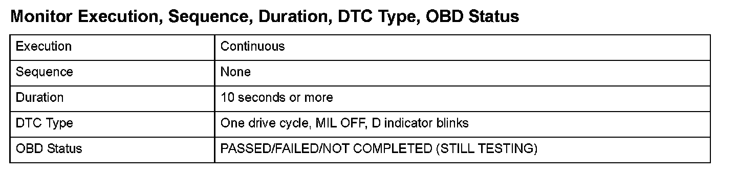 Monitor Execution, Sequence, Duration, DTC Type, OBD Status